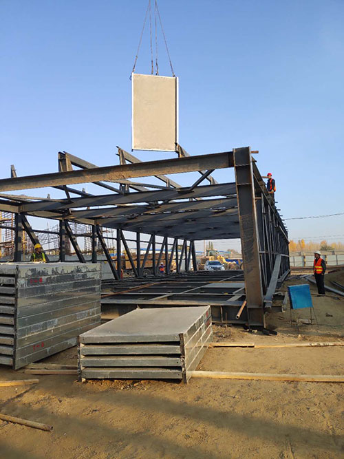 鋼骨架輕型板適用于輸煤棧橋、公共民用等建筑圍護屋面、樓面、墻面.鋼骨架輕型板由輕型鋼骨架、冷拔鋼絲網(wǎng)、改性水泥珍珠巖復(fù)合芯材(專有技術(shù))、復(fù)合抗?jié)B耐磨涂層(專有技術(shù))組成.鋼骨架輕型板集輕質(zhì)、承重、節(jié)能、防火、隔聲、泄爆、抗震等功能于一體,既保持了傳統(tǒng)鋼筋混凝土構(gòu)件安全度高、使用壽命長的優(yōu)點,又滿足了現(xiàn)代建筑對輕質(zhì)、節(jié)能、環(huán)保的要求。